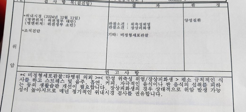 그리고 그냥 비정형세포라고 하셨어요 크게 걱정안했는데 걱정입니다