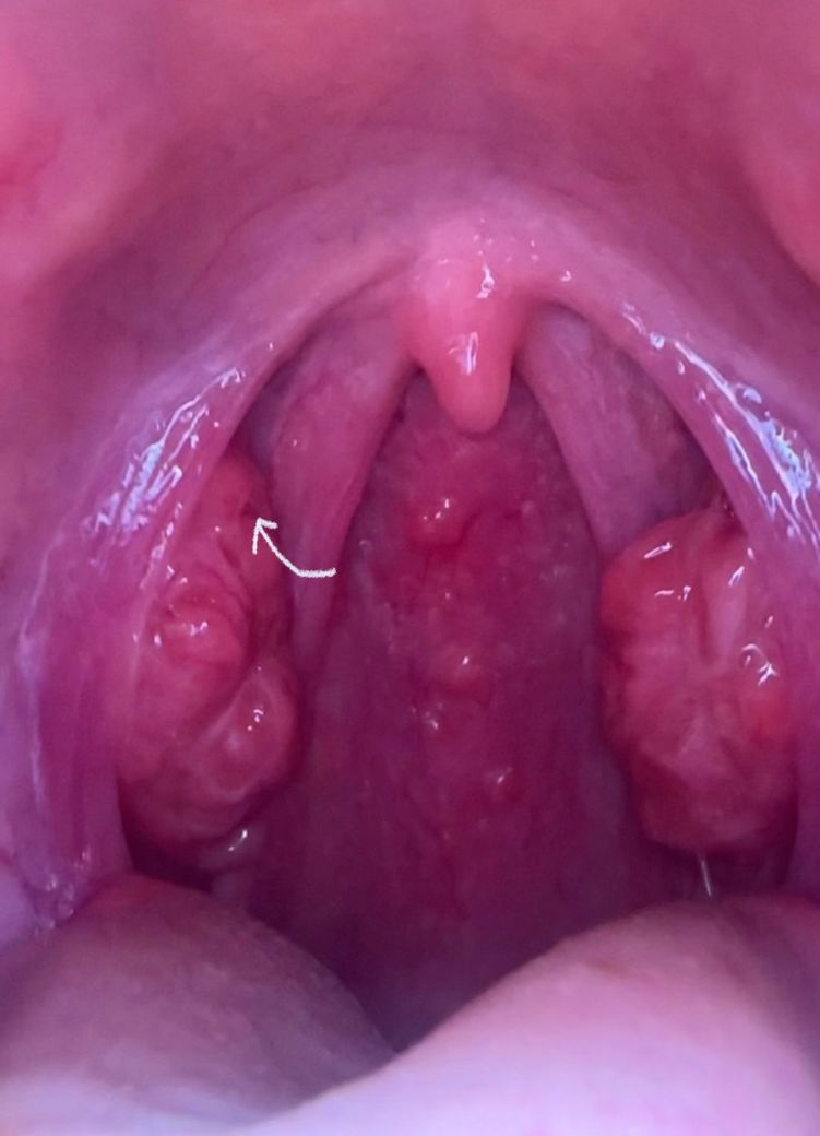 안녕하세요! 제가 원래도 편도가 큰 편이에요 오른쪽 편도가 부은게 아닌 원래 평소 제 편도 크기인데 얼마전부터 뭔갈 삼킬 때 마다 기분 나쁜 냄새가 나서 편도결석이 있는지 살펴보느라 요즘 자주 목을 들여다 보고 있어요. 와중에 어제 오랜만에 목을 봤는데 저렇게 왼쪽 편도가 오른쪽보다 확실히 커져있었고 화살표 친 부분에 편도결석이 보여서 면봉으로 살짝 눌러서 빼냈습니다! 결석 크기는 크진 않았고 빼낸 즉시 삼킬때 마다 났던 냄새는 많이 사라졌습니다.