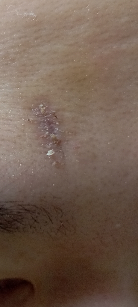 상처는 이미 아물었네요. 얼굴은 조금 일찍 봉합을 제거합니다. 아직 아플 수 있는 시기니 건들지 마시고 지켜보셔도 됩니다.