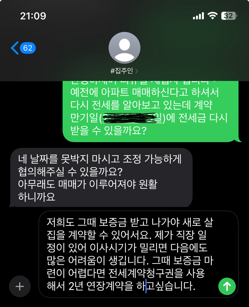 문자내용대로 보내보시면 임대인 측에서 뭐라고 답이 있을겁니다