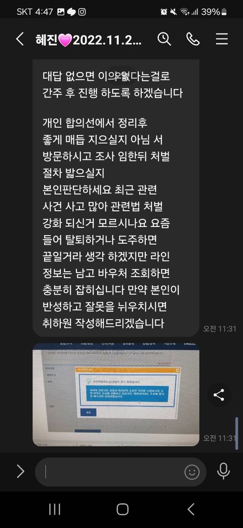 라인으로 협박 당하고 있습니다 도와주세요