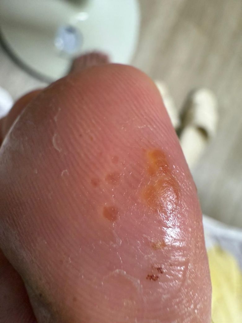 언제부턴가 발바닥에 큰 수포가 전체적으로 생겨서 수포 속 물집이 가득차고 크기도 많이 커져 걸을 때 불편하여