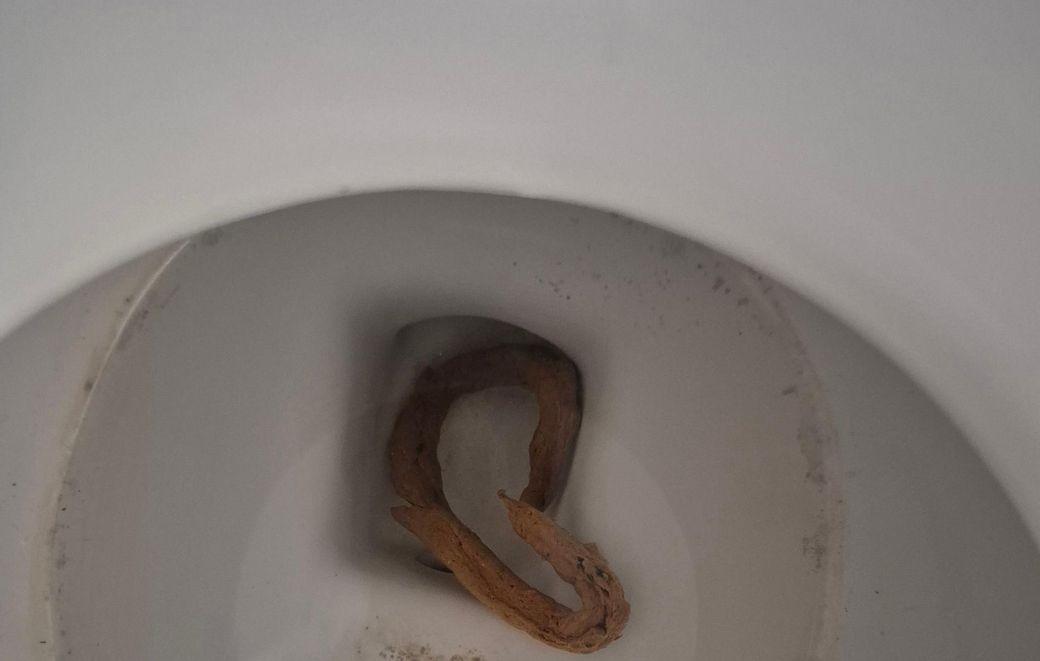 아침에 변을 보고 우연히 봤는데 이렇게 생겼던 겁니다 혹시나 하는 마음에 바로 사진도 찍었구요. 평소와 다른 모양의 대변이라 약간 의아하기도 했습니다. 물은 하루에 1.5L씩 꾸준히 마시고 있습니다.