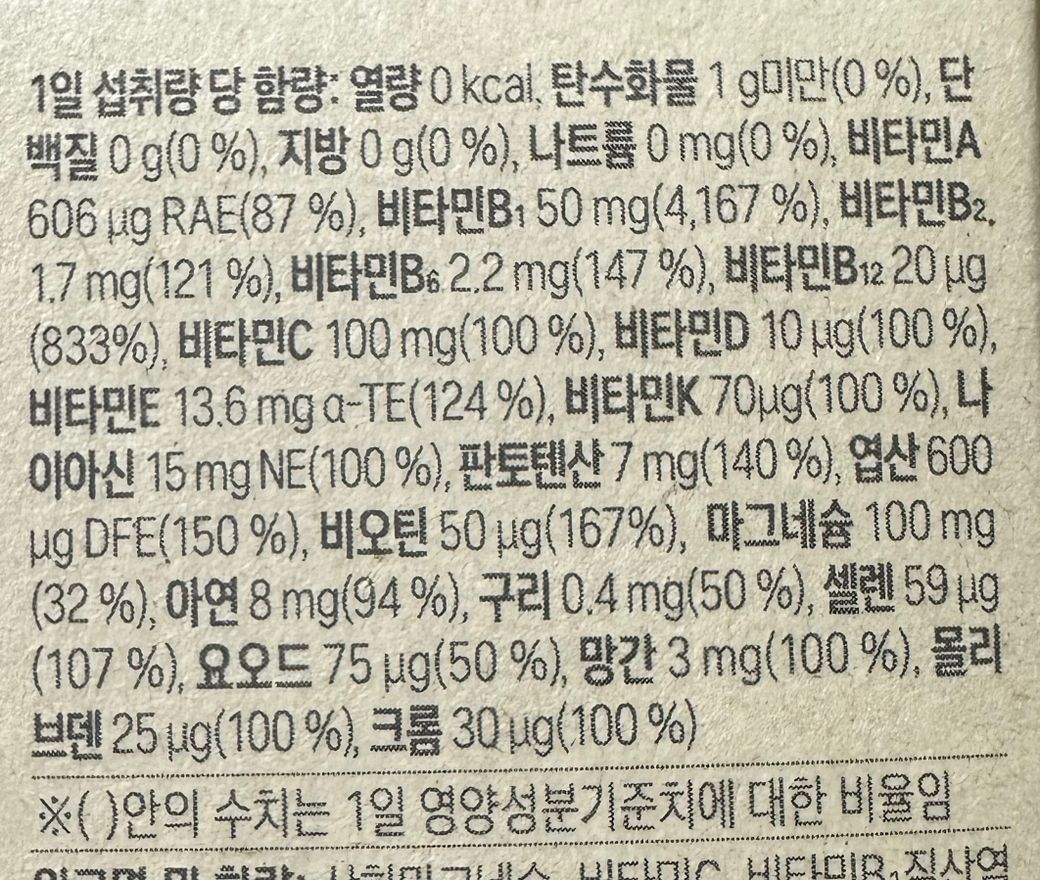 첨부한 종합비타민 성분이 고함량이 아니라 문제될 정도는 아닙니다