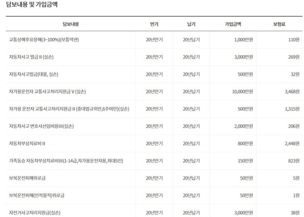 예전에 가입해서 교통사고처리지원금, 변호사선임비용 가입금액이 낮고