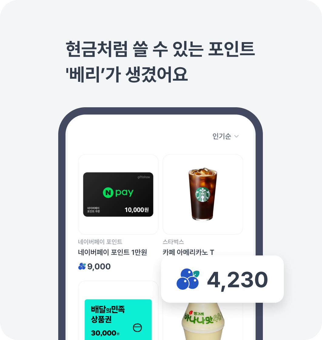 🛍️베리몰에서 기프티콘으로 바꿔 보세요.
