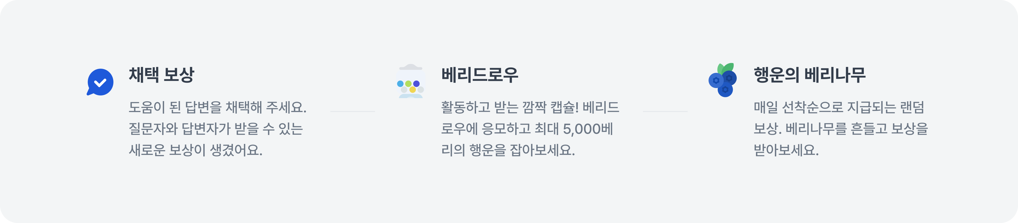 베리는 현금처럼 쓸 수 있는 포인트로, 아하 커뮤니티 활동과 미션을 통해 모을 수 있어요.