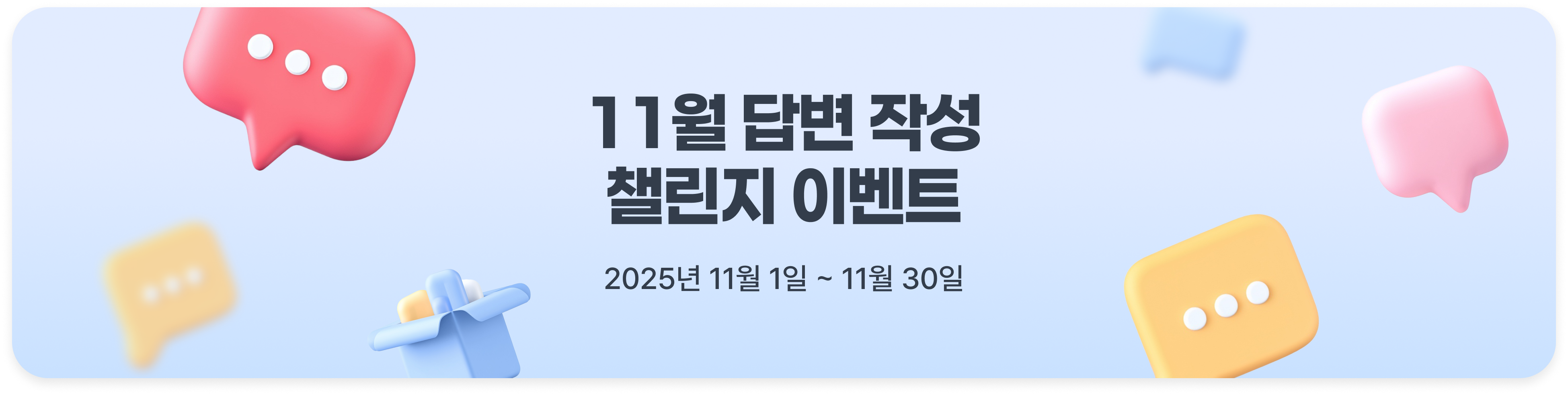 [이벤트] 11월 답변 작성 챌린지 이벤트에 참여해 보세요!