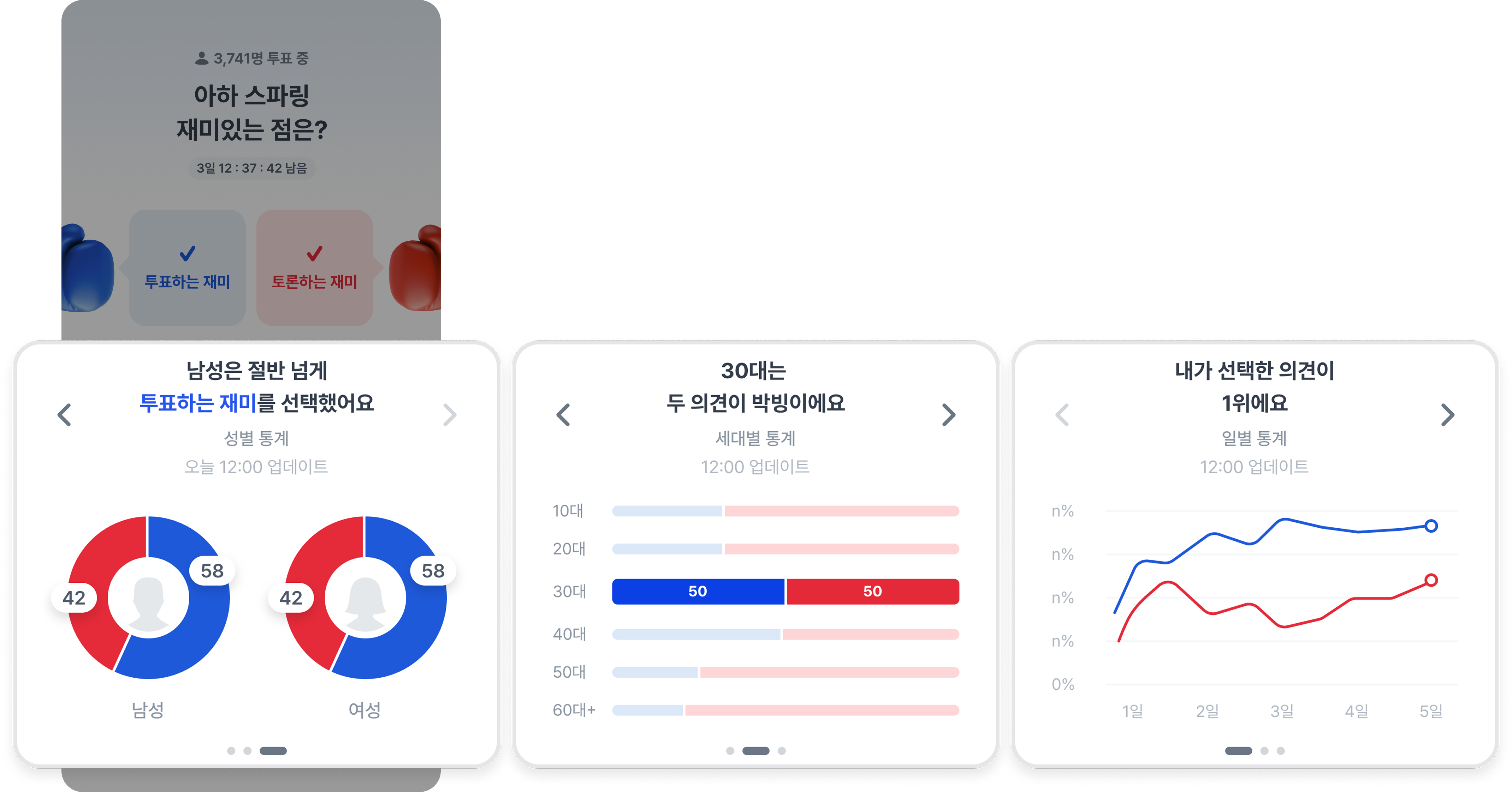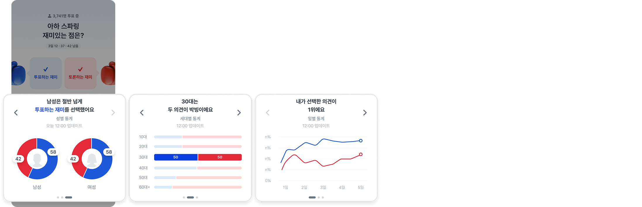 나의 의견이 오늘 몇 위인지, 나와 비슷한 사람들은 어떤 의견을 가지고 있는지 한눈에 확인해 보세요.