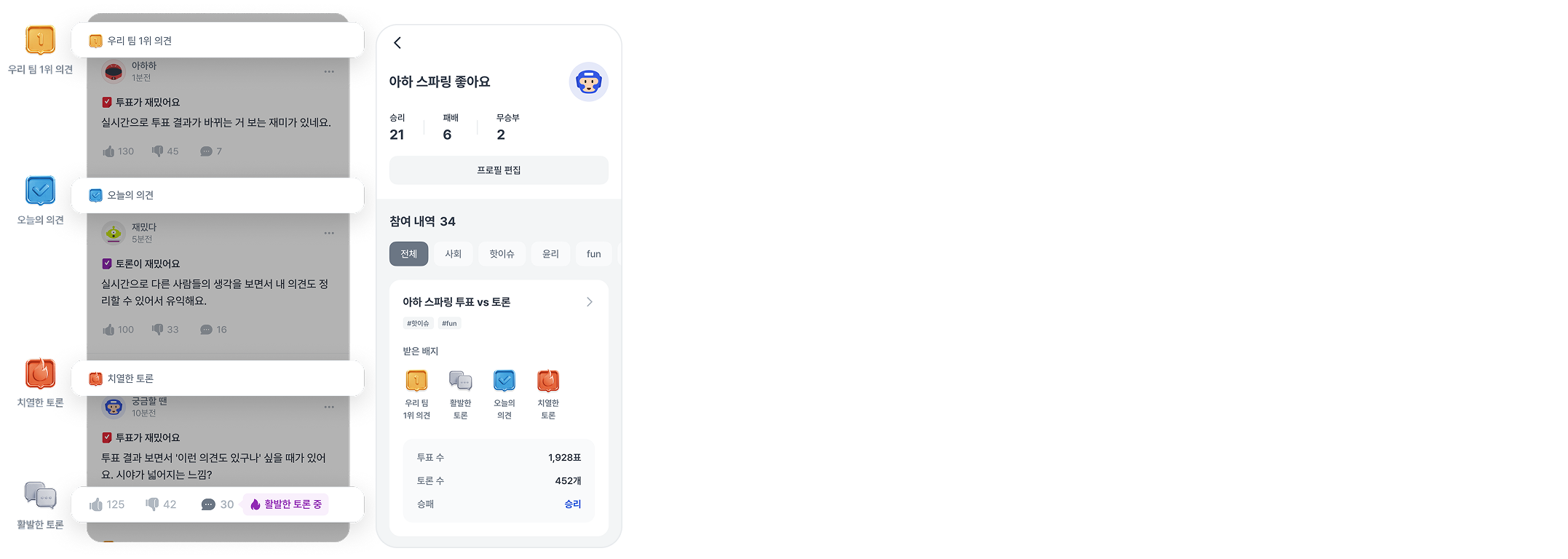 활발한 토론: 내 의견에 댓글이 활발하게 달리고 있어요.