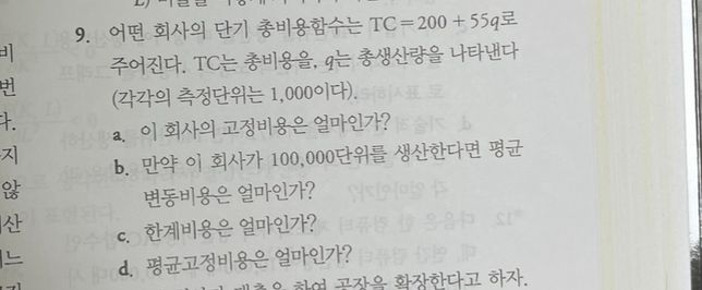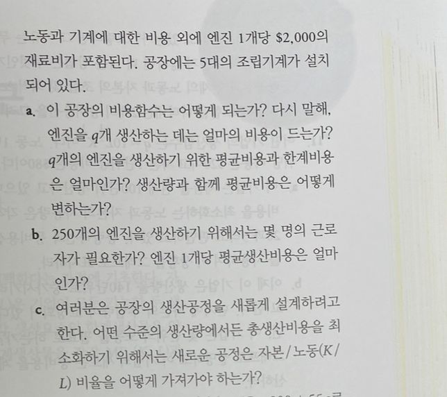 미시경제학 생산비용 파트에서 나오는 문제인데 a,b,c문제를 어떻게 풀어야 하는지 알려주시면 감사하겠습니다 ㅠㅠㅠㅠㅠㅠ