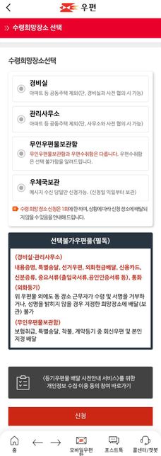 제가 우체국예금 앱으로 체크카드 1개를 신청했는데요. 우체국 등기로 배송된다고 해서 우체국 앱으로 배송조회 해봤는데요. 보관장소 선택란에 우체국 보관이 있네요. 이걸 선택하면 우체국예금 창구에서 수령 가능한가요?