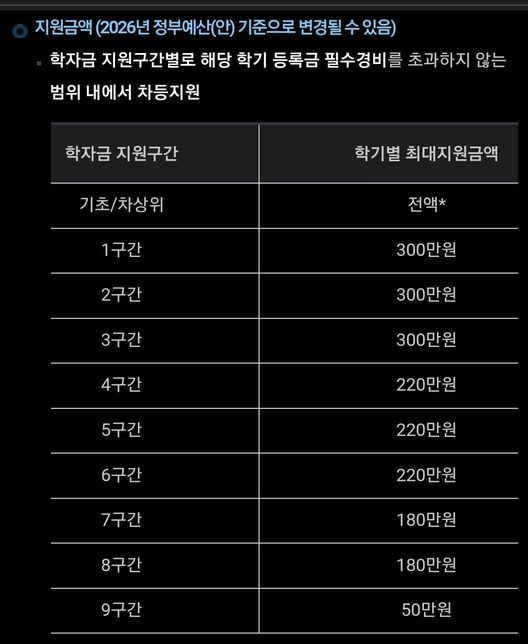 - 대학교 생활고민상담아직도웃긴조랑말국가장학금 최대 지원 금액이 어떻게 되나요..?학자금 지원 구간 별로 한 학기별 최대 지원 금액이 180만원 이라 나오는데, 학비가 180만원보다 낮은 경우를 제외하고 180만원보다 적게 받는 경우가 있나요???3명이 답변했어요