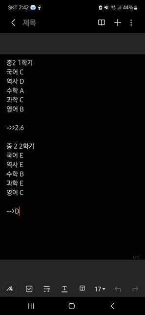 - 중학교 생활고민상담효욥ㅇ엄청빠른 답변 부탁드려요ㅠ, 저 중학3 기말 점수 계산하는 방법 알려주실 수 있을까요?ㅠ현재 점수는 영어48, 사회42,점, 중국어72점 입니다평균 50점일까요...?계산 방법과 함께 알려주시면 감사하겠습니다ㅠ.3명이 답변했어요