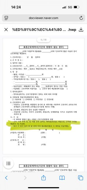 - 임금·급여고용·노동큰문어211근로계약서에 적힌 부분 적용되나요?사장님이 정신적으로 지치게 하셔서 그냥 전날 통보로 알바 퇴사하고 싶은데요. 애초에 절반만 준 것도 불법인데 첫주 돈을 아예 안주는 게 가능한가요? 끝까지 안주겠다고 하시면 노동청에 신고해서 받을 수 있나요?* 사진에 형광펜 표시 참고해주세요그리고 제가 전날 통보식으로 퇴사했을 시 받을 불이익이나 법적 문제가 있을까요..6명의 전문가가 답변했어요