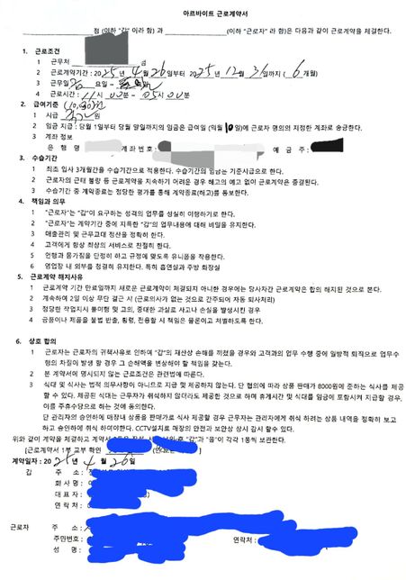 - 임금·급여고용·노동보통은인기많은탐험가PC방 알바 주휴수당 관련 질문드립니다안녕하세요 현재 PC방에서 알바 진행 중인 작성자입니다. 같이 첨부한 근로계약서에 명시된 상호협의 내용 중 주휴수당을 급여에 포함시킨다는 내용이 기재되어 있는데 실제로 지금까지 전 주휴수당 포함이 안된 최저시급으로만(시간당 10030원) 급여를 받아왔습니다. 사장님에게 따로 얘기를 드렸으나 근무 중 식사제공 또는 식사를 하지 않아도 한걸오 취급하여 이게 급여로 포함시켜 나가는거니 주휴수당을 계속 안주시겠다 하시고 하루 6시간 씩 금.토.일 3일간 일해서 1주 근로시간 18시간이라 주휴수당 조건에 부합하는데도 근로계약서 내용이 저렇게 써있어서 저대로이여도 제가 따로 주휴수당을 못받았다고 노동청에 의의제기가 가능한건지 너무 궁금합니다. 다들 바쁘신 와중에도 의견 남겨주시면 매우 감사할 것 같습니다!5명의 전문가가 답변했어요