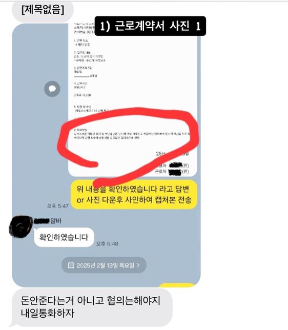 - 임금체불고용·노동가장희망을주는카페라떼근로계약서에 사장 사인이 없으면 신고가능한가요?현재 3월 임금이 체불된 상태입니다. 사진은 사장님이 제게 무단퇴사를 주장하며 협의를 해야한다고 보내온 근로계약서 사진인데 보시면저야 확인했다는 말을 했다고 하더라도 사장 사인이 없습니다. 추후에 사인된 근로계약서 사진을 받은 적도 없습니다. 이런 경우에 근로계약서 미작성으로 볼 수 있나요? 급여를 달라는 연락에도 의도적으로 하지 않고 있어서 가능한다면 근로계약서 미작성으로 신고까지 하고 싶어 질문드립니다3명의 전문가가 답변했어요