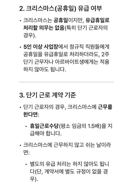 - 휴일·휴가고용·노동해기숙아르바이트 공휴일 유급 휴가 질문 드립니다안녕하세요 2주 계약직으로 현재 사무보조 알바 중입니다. 1일 8시간 주 5일 일하는데 이번 성탄절 때 알바라서 무급 휴가로 들어가는 대신 주휴수당 발생하지 않냐고 그러는데 유급 휴가랑 주휴수당은 따로 각각 줘야하는게 맞는거 아닌가요? 상시 근로자 5인 이상입니다.1명의 전문가가 답변했어요