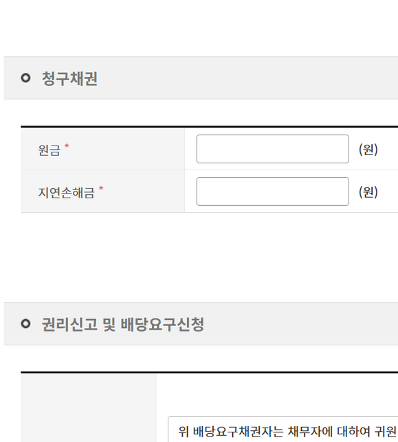 - 가압류·가처분법률제로초권리신고 및 배당요구신청서 작성 시 원금과 지연이자 문의전세금반환건으로 임의경매 진행 중이고 배당요구종기일이 다가오고 있습니다. 임차권 등기명령을 한지라 경매계에서는 일반채권인 지연이자와 소송비용(확정결정 받음)만 따로 배당요구를 하라고 했습니다. 그래서 전자소송으로 입력하려고 하는데 원금과 지연손해금을 넣는 칸이 있는 거 아닙니까?여기서 좀 헷갈리는데 원금이 보증금을 말하는 걸까요 아니면 제 지연이자+소송비용을 말하는 걸까요?다른 데에서는 구체적으로 지연이자를 적지 말고 언제부터 언제까지 5%, 그 다음날부터 다 갚는 날까지 12% 이렇게 범위를 적으라고 하더라고요. 다 갚는 날까지 이자가 계속 늘어나니까 구체적으로 얼마인지 알 수 없어서 그렇다고 봤던 것 같습니다. 그런데 이렇게 하면 전자소송 양식으로는 안 되는 것 같더라고요.어떤 게 맞는지 궁금합니다.1명의 전문가가 답변했어요