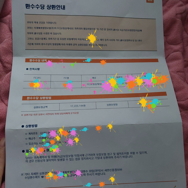- 가족·이혼법률섹시한하마29216년전 설계사때 가입시킨보험환수금 ..재혼한 남편의 16년전 보험설계사때가입시킨 보험이 유지가 안되서.환수수당 상환안내장이 왔네요..그전 결혼생활은 어찌했는지도 의문스럽고....보증보험 다달이 갚아나가서 끝난게 몇개월전인데이런게 또 날아오니 어이없네요..혼인신고를 해두 재산상에 불이익을 당하진않을지 염려스러워글 남겨봅니다.2명의 전문가가 답변했어요