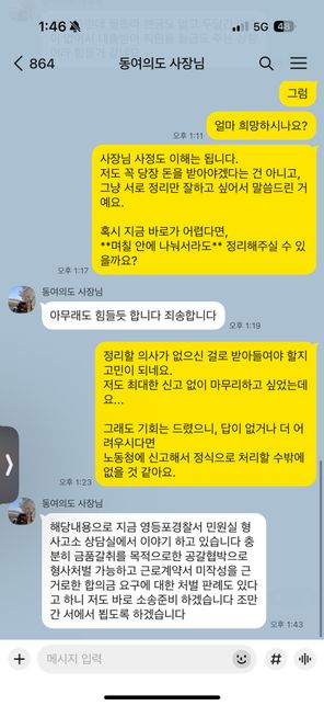 - 민사법률빨간얼룩말278협박이 가능한가요? 금품갈취로 신고한다고 합니다근로계약서 미작성으로 사장님과의 대화를 한 내용입니다 사장님이 주장하시는건 금품갈취를 위한 공갈협박이라고 하는데 이게 공갈협박에 해당이 될까요?3명의 전문가가 답변했어요