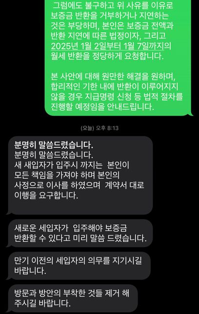 - 부동산·임대차법률고운코끼리142보증금 반환 신청 후 지연 .지급명령 손해배상 청구안녕하세요 원룸 중도퇴실을 하게되어 새세입자를 개인적으로 구했습니다 새 임차인과 1월 2일에 퇴실 및 입실을 합의했고 임대인 분께 말씀 드리니 청소를 해여한다며 1월 5일 이후 입주로 미뤘슺니다 저는 1월 2일 퇴실을 마쳤고 집주인과 새 세입자는 미팅 , 계약서를 작성했다고 알고 있습니다 본래 1월 2일에 새 임차인이 보증금 반을 선납입하면 보증금을 돌려준다고 했는데 새 임차인과 임대인이 만난 후 한도 이유를 대며 지급을 1월3일로 미뤘습니다 1월 3일 임대인이 방을 청소하며 화장실 소모품 (수건걸이 휴지걸이) 녹슴에 제 탓으로 몰며 언쟁이 일어났고 돈을 못준다며 법적 얘기도 나오게 되었습니다 그 후 저는 문자로 공식적으로 정리하여 1월 2일 퇴실을 하며 목적물 인도를 했고 제 임대차 계약은 종료되었다 판단되며 새 임차인과의 계약은 별도의 문제임을 말하며 보증금 반환 및 월세 차액을 요청했습니다 사진은 그 후 온 문자입니다원래 임대차 분쟁조정위원회로 분쟁조정을 신청하려 하였지만 임대인의 태도를 보면 시간만 길어질뿐 조정이 되기 어렵다 판단하여 지급명령을 신청하려합니다 추가적으로 제 잔존물건을 부셔서 버린 건에 대해 손해배상 청구도 할 예정입니다 질문은 제가 지금까지 판단한것이 확실히 맞는지 제가 지급명령 (보증금 전액 반환, 월세+관리비 1월2일~7일까지 차액 , 보증금 지연 이자) 후 손해배상 청구까지 충분히 할만한 상황인지 조금은 자세한 자문를 구하려 합니다1명의 전문가가 답변했어요