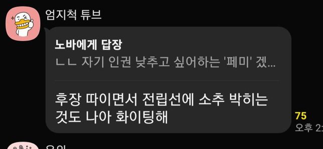 - 성범죄법률힘찬직박구리6이런 경우 통매음에 성립이 될까요??오픈채팅방에서 어떤 사람이 이렇게 상대방에게 톡을 남겼습니다. 서로 싸우는 와중에 상대방이 저렇게 톡을 올렸는데 이게 통매음에 성립이 될까 궁금합니다.2명의 전문가가 답변했어요