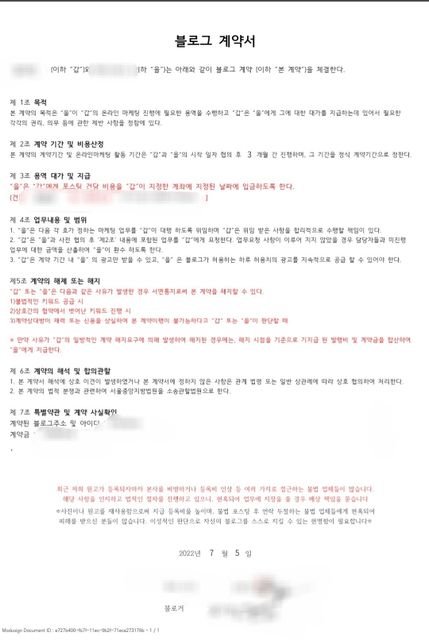 - 지식재산권·IT법률엄청난돌고래44블로그 포스팅 계약 도움받을수 있을까요?올해 7월 5일 계약서에 싸인을 한 후블로그 포스팅계약을 맺었습니다 ㅠ그런데 포스팅 발행 마다 트러블이 발생했어요1.약속된 시간에 지급하지 않아 늦어질경우 미리 연락을 부탁드렸음 에도 지금까지 지켜지지 않고 있음2. 중복 제품 및 지역키워드 거부- 거부할수 있다해서 거부하니 연락이 드문드문 옴 드릴 원고가 없다며 제가 너무 까다롭단 식으로 나옴3. 의료법위반사항으로 걸렸으나 표현이 문제인거지 법적으로 아무 문제도 없으며 블로그 지수에도 문제가 없으므로 계약 해지 불가능 하다함4. 업체공식 사진으로 7월업로딩된 사진을 잘라 편집해 원고를 줌업체사진과 업체sns업로드 사진 및 날짜 캡쳐해놓았고 보여주며 구도와 사진이 일치하는걸 말함처음엔 포토샵이라서 그렇다더니 갑자기 업체에서 무단사용 한거라고 함 / 중복사진은 이쪽에서 굉장히 예민한 사항 임에도그사진은 본인이 찍은거고 업체가 사용한거기때문에 억울하며 이 또한 블로그 지수에 반영이 안되니 계약 해지 어렵다함/ 7월에 업로딩된 사진을 9월에 어떻게 쓰냐며 원본사진 요구하자 원본 삭제처리 하였으며 당사에선 억지부리지 말라며 잘못한게 없으니 인정할것도 계약해지 도 못한다고 함계약 만료는 10월 5일 인데 저는 그동안 그리고 지금 너무 스트레스를 받아 계약 해지를 원하는데 절대 안된다며 밀어 붙이고 있는 상황 입니다.그동안 업체의 불성실함과 잦은 트러블로 너무 힘이들어 계약 해지를 원하는데 이경우 제가 계약서에 명시되어 있는 대로 돈을 돌려줘야 하는걸까요..? ㅠㅠ대화당시 막말로 라면서 제가 다른 업체에 현혹 되거나 이상한 메일 과 주변인들의 말만듣고 확인되지 않은 헛소문을 듣고 뭐라한다며 폭풍 카톡을 하셨는데 저는 다른업체와 말을 하지도 이중계약도 하지 않았으며 대체 무슨이메일을 말하는건지도 모르겠고 다른사람이 해준말은 이거 사진 좀 이상하니 물어봐라 가 다였는데 뭣 모르는 지인이 불씨고 본인들은 잘못한게 없으며 헛소문을 듣고 제가 억지를 부린다고 합니다... 위 대화내용은 캡쳐하기도 짜증나 올리지 않았습니다 ㅠ