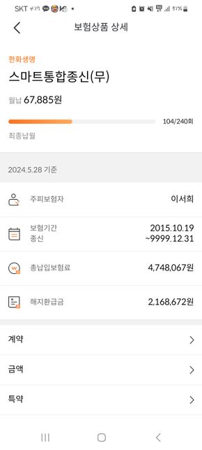 - 상해 보험보험탈퇴한 사용자종신보험2세대유지,4세대 변경 고민제가 지금 있는보험중에 실비때문에 고민중입니다나이는 27살이구요(만26살)사망보험에 실비보험까지 포함되어있는 종신보험2세대를 유지를 하냐 아니면 4세대로 변경을 하냐 고민을 하고있습니다 2세대,4세대 차이는 알고있습니다 지금 보험가입되어있는걸로 실비청구는 한번도 해본적은 없습니다그러고 궁금한건 저 240회를 납부하면 끝나는건지 보험료가 적어지는건지 그것도 궁금합니다4명의 전문가가 답변했어요