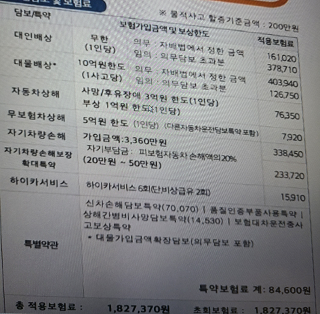토레스 1.5 T7 첫차 입니다.생각했 던 금액보다 너무 쎄게 나와서요..임의담보 초과본 및 자기차량 손해보장특약 넣어야 하는 항목일까요?그 외 줄여야 할 한도가 더 있을까요?