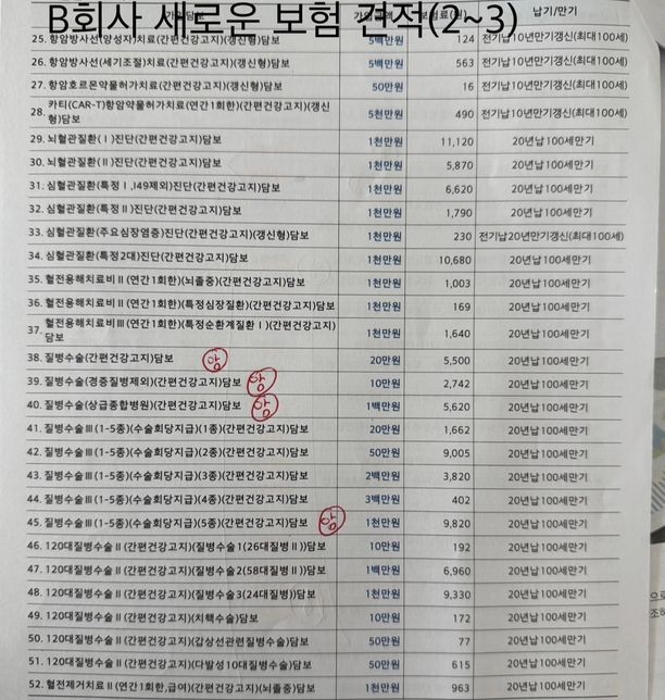 - 의료 보험보험감사하자12보험을 리모델링 하려고 해요 점검 부탁드리겠습니다(수정본)안녕하세요 나이는 46세 여자이고이전에 가지고 있는 보험이 많이 미약하고후회스러운 부분들이 많아서다시 리모델링해서 가입하려고 해요아래 상담받은 보험사 견적이 있는데1. 추가할 항목이 있는지2 빼도 되는 항목이 있는지3. 중복되는 항목이 있는지봐주실 분 계신가요?아시는 분 꼭 부탁드리겠습니다(참고로 여성 자궁쪽, 심장, 고혈압 쪽은 넣고 싶어요현재 자궁 근종외엔 다른이상 없습니다)7명의 전문가가 답변했어요