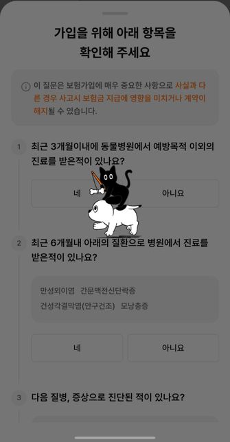 - 의료 보험보험매일신비로운제육볶음강아지 보험 가입 전에 진료를 봤는데 가입은 됐어요강아지 보험 관련 질문이에요 8살입니다얼마전 앞을 잘 못 보는 느낌이 들었습니다어제 산책 중 자주 가던 동물 병원을 갔고 백내장이 아닌 망막의 문제 같다, 우리 병원은 검사가 어려우니 전문 병원을 가보라고 하셨습니다. 말씀 허시길 한쪽은 시력이 거의 없고, 한쪽은 조금 남은 거 같다라고 하셨어요(이때 검사보단 눈 한쪽씩 가리고 손을 가까이 대서 반사를 하는지 보는 테스트 정도였어요)그리고 집에 와서 까먹고 있었던 펫보험을 찾아 가입했어요제가 든 보험은 마이브라운입니다.가입 첫 질문부터 사진처럼 예방목적외에 진료를 묻는데 그땐 생각 없이 아니오를 체크했고 가입이 됐습니다.근데 글 쓰는 기준 내일 안과 전문 병원에 망막검사 예약을 했는데 문득 간단한 테스트여도 시력 저하나 반응없음 정도로 차트지에 적힐 것 같은데 그럼 보험 가입 전 올라간 내용이니 안과에 관한 약관은 아예 보장 받기 어렵지 않나...?라는... 너무 생각이 짧았고 너무 빠르게 악화됐어요...제가 궁금한 건 이 상황에서 뭘 할 수 있을까요?- 내일 큰 병원을 가기 전 어제 간 병원에 연락해서 차트에 소견을 뭐라고 적었는지 확인 정도는 받을 수 있을까요?- 변경을 해달라고 하면 안되겠죠..?- 만약 안과쪽으로 보험 보장이 안된다면 다른 보험으로 바꿀 필요도 없겠죠? 어디든.. 이미 진료를 받았으니 안 받아 줄 것 같아요-내일 첫 병원에 소견 묻고 전문병원에서 검사 후 보험사에 전화해서 물어봐도 되는 걸까요?2명의 전문가가 답변했어요