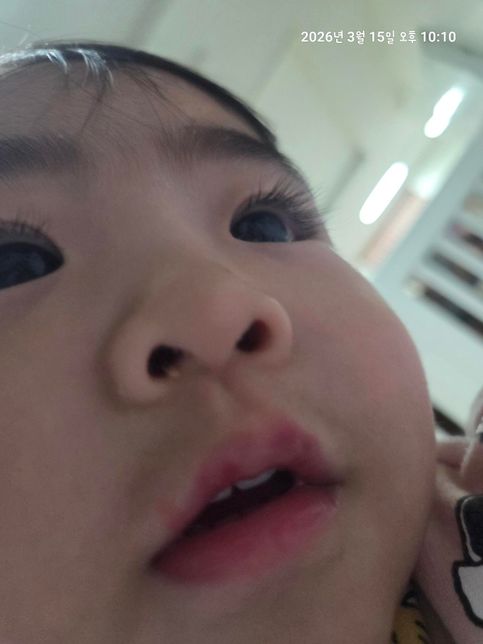 평상시랑 다르게 입술위가 저런데 수족구일까요 요즘 수족구유행인가요? 어린이집 안다니고있는데 ㅠ 답변 부탁드립니다 ㅜㅜ글자수
