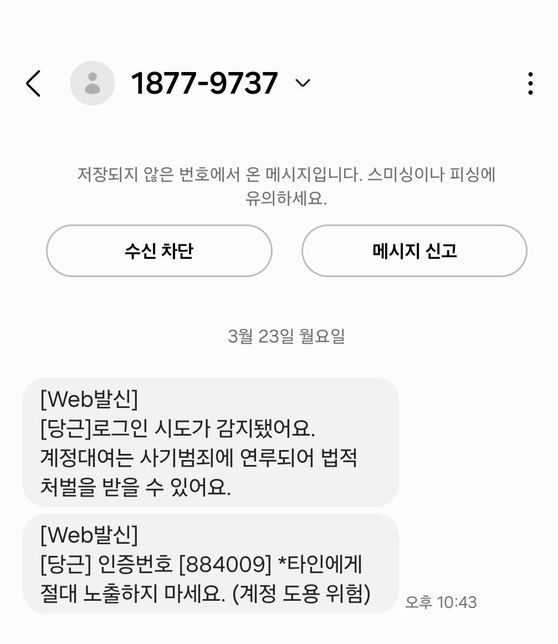 당근마켓 전화번호로 로그인 시도 관련 메세지를 받있습니다.