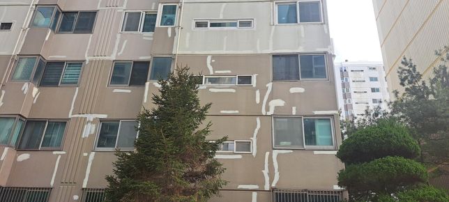 아파트 도색 작업 전에 이곳 저곳에 칠한 것이 무엇인가요?