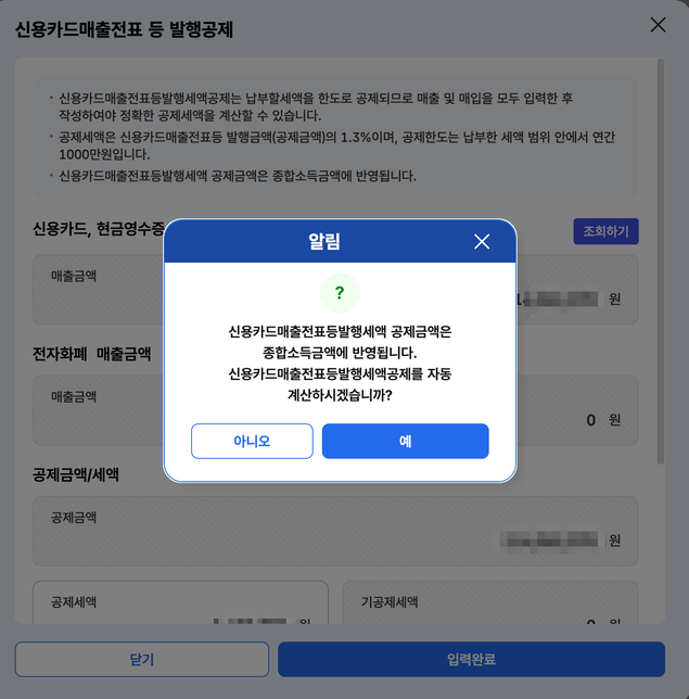 - 부가가치세세금·세무위용있는물수리151부가세신고시 신용카드매출전표 발행 세액 질문드립니다안녕하세요부가세 신고시신용카드 매출전표등발행세액 공제를 적용하면 위와 같이 문구가 뜨는데요공제를 적용해서 부가세를 신고하면 나중에 종합 소득세 신고시에 공제 받은 금액을 제가 직접 입력하거나 빼줘야 하나요?아니면 홈텍스에서 자동으로 공제받은것 적용 되서 계산되나요?답변 주신 모든 세무사님께미리 감사의 인사드립니다오늘도 좋은 하루되세요 ^^2명의 전문가가 답변했어요