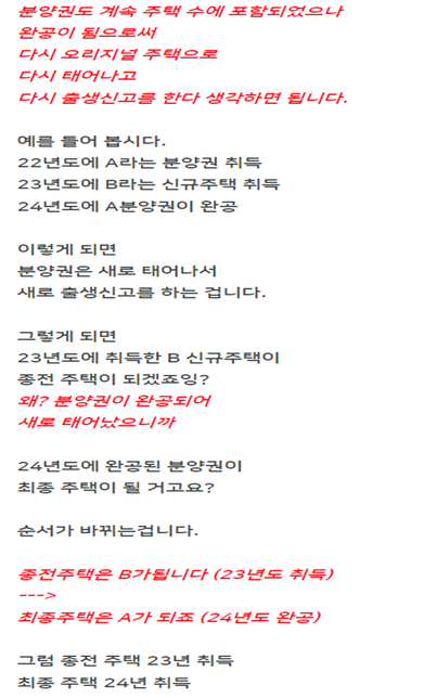 - 양도소득세세금·세무목마른하늘소239이와 같은 상황에서 비과세가 맞는건가요?A. 배우자 분양권 2021년 07월 취득 B. 본인 민간공공임대 2021년 11월 등기 C. 2024년 7월 분양권 잔금 처리 후 입주(취득하면서 분양권 사라짐) D. 2024년 8월 B번에 해당하는 민간공공임대 등기친 주택 매도 이와 같은 경우 분양권이 완공되어 3년이 지난 시점에서 취득했으므로 분양권은 사라지고 종전주택이 B번에 해당하는 주택으로 순서가 바뀌므로 비과세에 해당하는 상황인지 질의 드립니다.하기 내용은 검증이 안된 블로그 내용을 발췌했습니다.1명의 전문가가 답변했어요