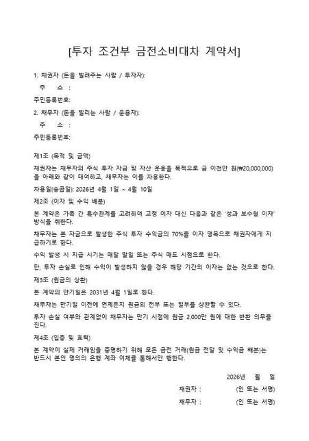- 증여세세금·세무역대급말쑥한당나귀현금 증여 시 증여계약서를 작성해야하나요?혼인공제와 함께 부모님께 1억 5천 증여를 받을 예 입니다.찾아보니 혼인관계증명서 가족관계증명서 이체내역이 3가지는 공통사항인것 같은데어떤곳에서는 증여계약서를 쓰라고도 하고 어떤곳은 필요없다고도 합니다혹여 증여계약서를 작성하지않으면 이후에 증여증빙등에서 문제가 발생할까요?2명의 전문가가 답변했어요