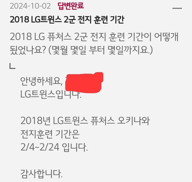 2018 LG 트윈스 퓨처스 전지 훈련 기간 역사가 나왔어요.