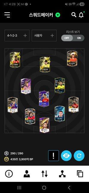 피파4 스페인으로 42211을주로 하고 4123을 전술 바꿔 쓰고 있습니다. 게산을 잘못해서 파레호le가 있는데 4123으로 바꾸게 되면 라울을 빼야 되더라구요. 현재 54조bp 있습니다. 제가 프로를 못 벗어나고 있는데ㅜㅜ 1. 티키타카 중거리 괜찮은 포메이션이 뭐가 있을카요?2.로드리 괜찮다고 하는데 현재 로드리랑 파레호 팔면 wb8카 살수 있는데 이게 괜찮을까요?3.추천 포메이션중 누굴 사야 할까요?
