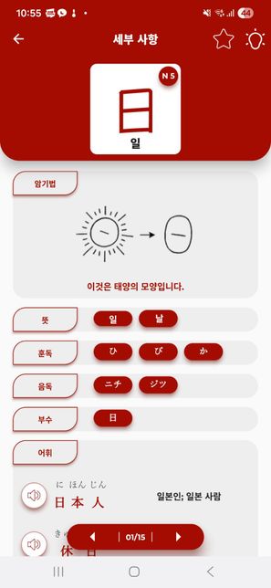 - 일본여행간절한청년일본어 한자 공부 이렇게 하면되나요?칸지 스터디라는 어플인데 사진 속에 있는것처럼 한자 아래에 한자 뜻, 음독, 훈독 외우면 되는거죠? 어떤식으로 외우는지를 모르겠네용2명이 답변했어요
