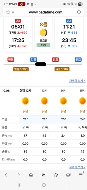 안녕하세요 바다낚시 물때표에 관해 궁금합니다.