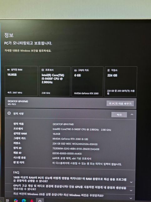 현재 스펙은 이정도 이고 배그 국민옵 돌리는기준으로 가능할지 문의합니다...........................