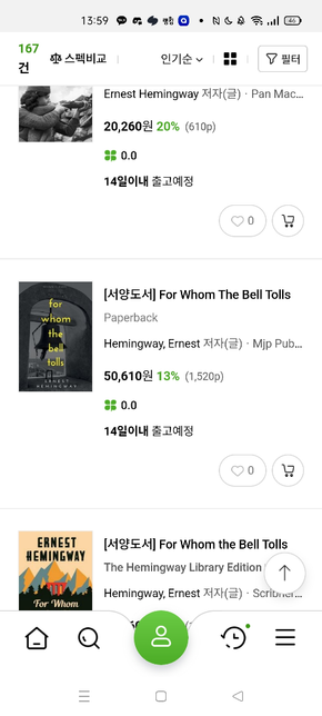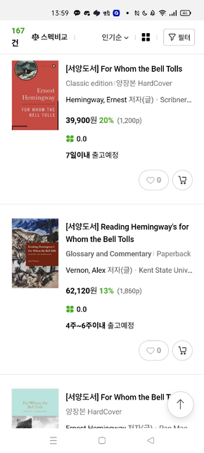 '누구를 위하여 종은 울리나'의 원서를 구하고 싶습니다